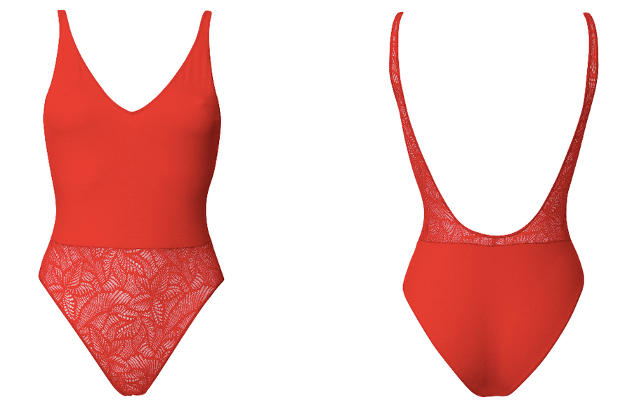 The Bodysuit La First is a sexy bodysuit with a beautiful front neckline and plunging open back.