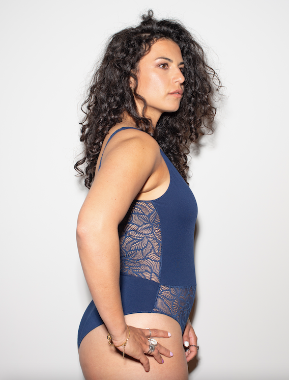 Notre dentelle est italienne : 88% polyamide recyclé, 12% élasthanne recyclé (chutes de tissus inutilisables qui sont retransformées en fils)